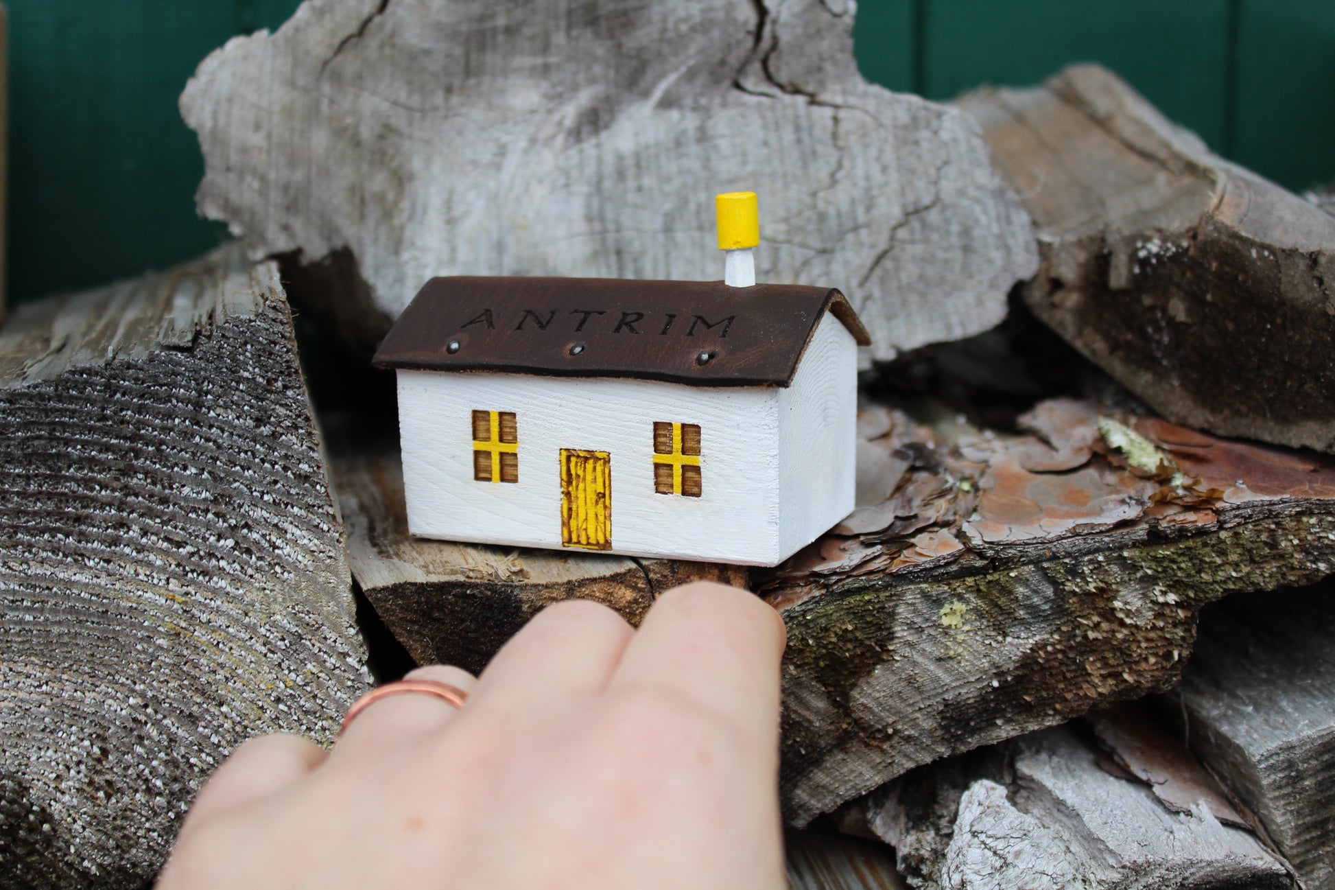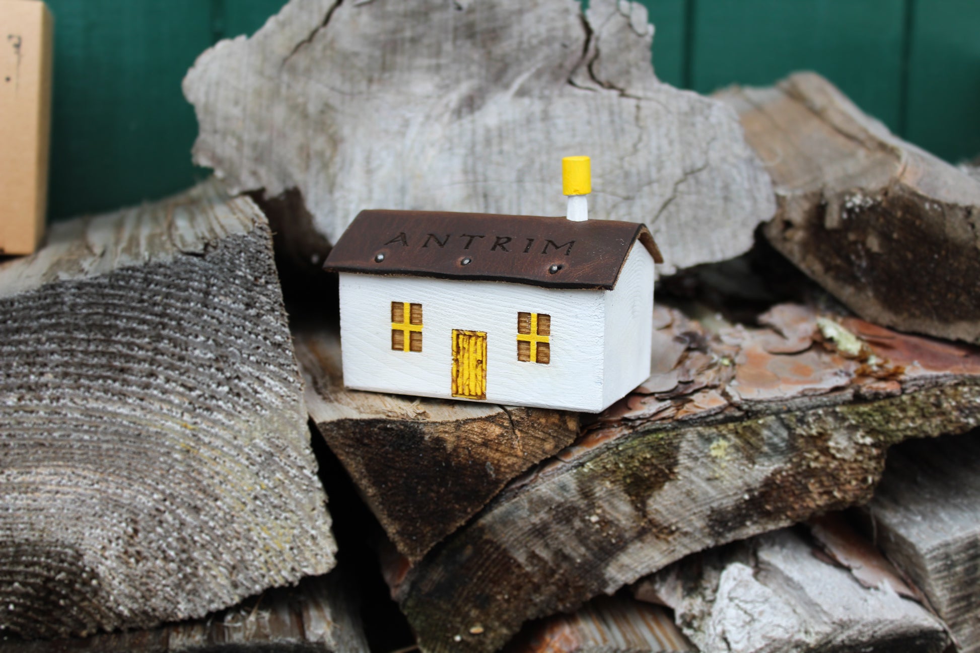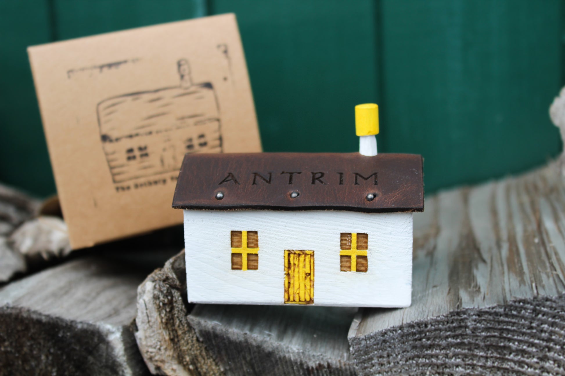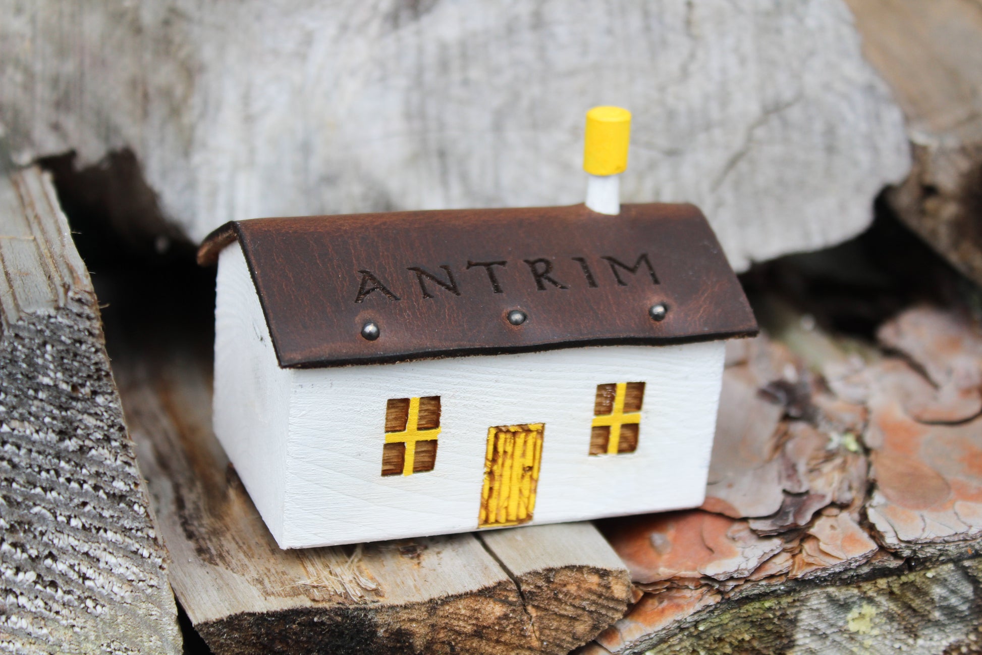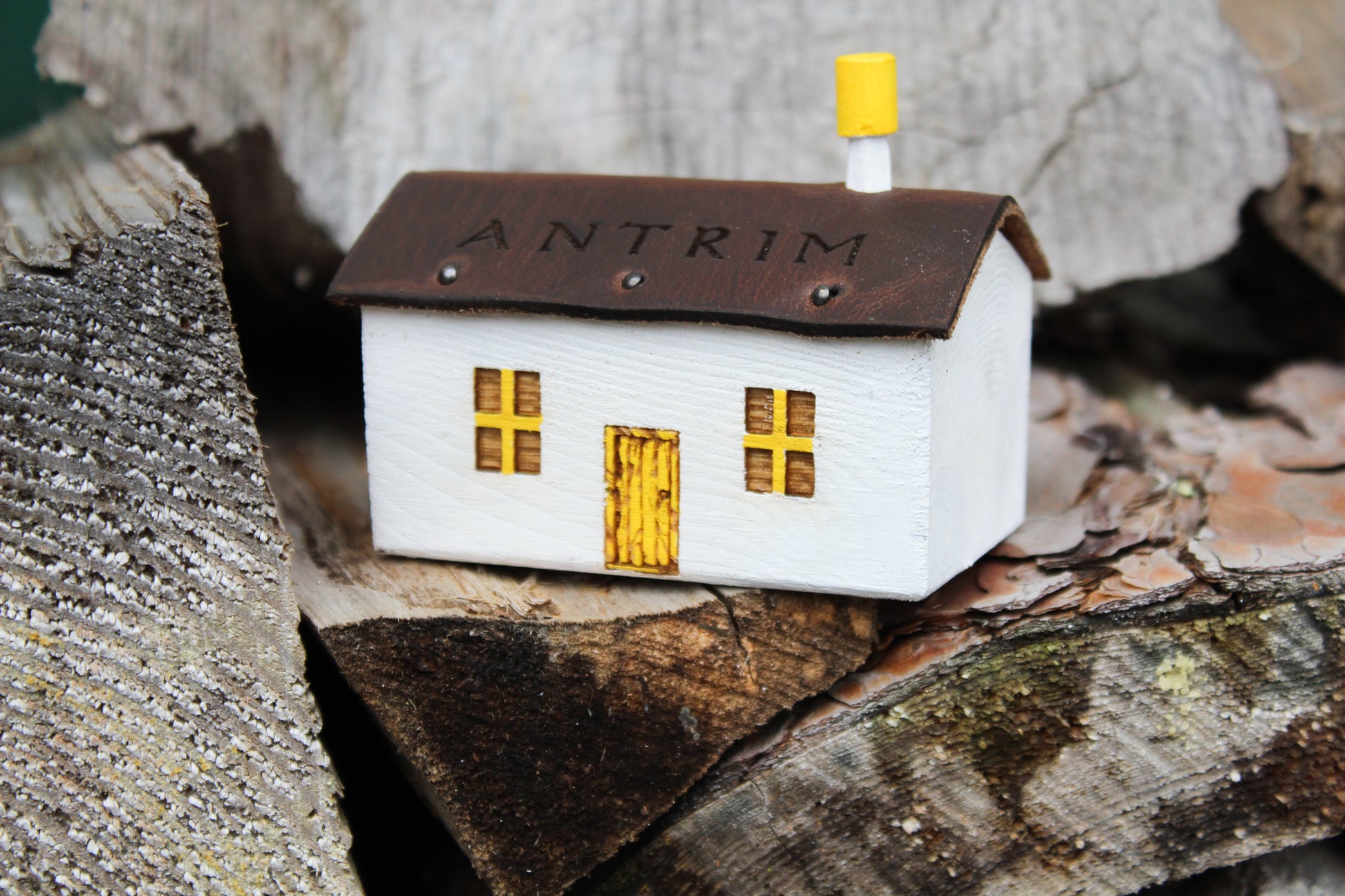 The cottages are first carved into shape, we then engraved the door and windows followed by adding a roof made from leather off cuts. Lastly we add the carved Chimney and paint with watercolours.